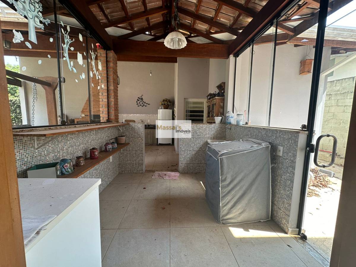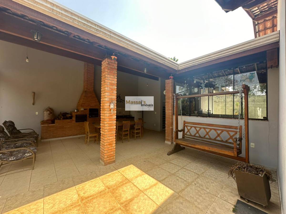 Imperdível casa TÉRREA avarandada à venda com 208m² de área construída no terreno de 1.204m², essa aconchegante residência será vendida de porteira fechada e conta com 3 banheiros, 3 dormitórios, sendo uma suíte com banheira de hidromassagem, cozinha americana, lavanderia, sala de estar e sala de jantar. Além disso, possui aproximadamente 10 vagas de garagem descoberta, ar-condicionado na suíte e em outro quarto e uma incrível área de lazer com piscina, quintal, charmosa churrasqueira com forno a lenha, banheiro de apoio e um quarto.